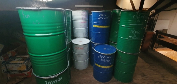 Vends environ 80 fûts de 200 l en métal ayant servi à stocker du miel (environ 300 kg). Nettoyage facile au Karcher.