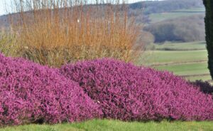 La bruyère de Darley (Erica x darleyensis) de la famille des éricacées Certains arbustes ou sous-arbrisseaux ont quasiment toutes les qualités requises pour figurer en première place dans les jardins destinés aux pollinisateurs. C’est le cas de la bruyère de Darley obtenue par hybridation entre la bruyère d’hiver (Erica carnea) d’origine alpine et la bruyère dite méditerranéenne (Erica erigena), en réalité d’origine plutôt atlantique (on peut aussi la rencontrer sur certaines falaises irlandaises et on l’appelle aussi bruyère de l’Ouest). Cet hybride interspécifique, donc stérile, présente une floribondité remarquable et une durée de floraison sans égale. En fonction des nombreux cultivars proposés par les pépiniéristes, elle est capable de fleurir sans discontinuer de novembre à avril. Si on ajoute qu’elle se contente de sols pauvres, bien drainés, donc sans excès d’humidité , on ne peut qu’être séduit. Son port étalé permet de réaliser des tapis denses en couvre-sol en plein soleil de préférence, cette plante étant plutôt héliophile.