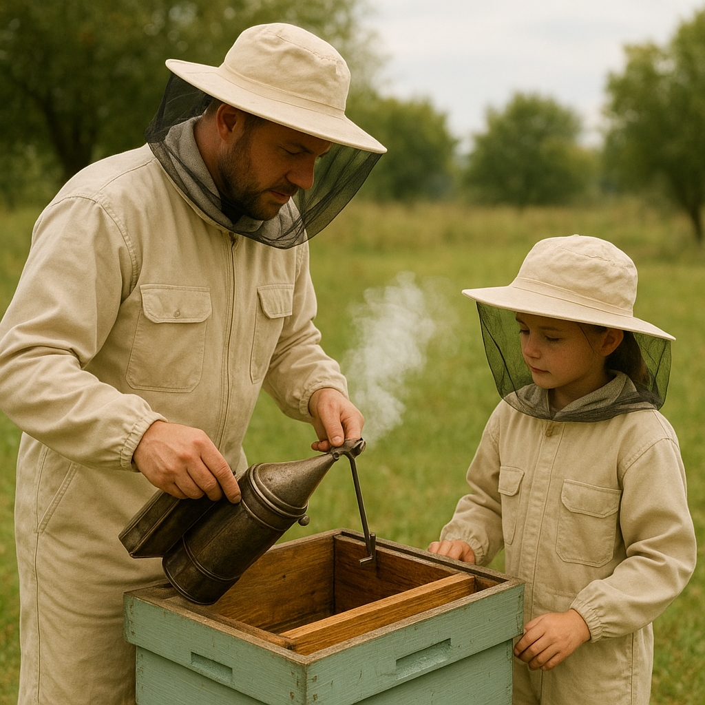 Le lève-cadres, indispensable pour décoller les cadres sans les endommager, est votre meilleur allié. L’enfumoir, quant à lui, aide à apaiser vos abeilles et facilite les manipulations. Prévoyez aussi une brosse douce pour déplacer les abeilles sans les blesser.