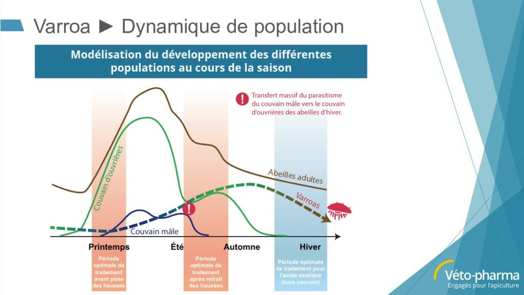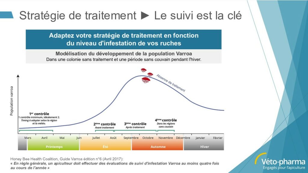 Ainsi, on estime qu’une colonie d’abeilles infestée et non traitée peut mourir dans une période de 6 mois à 2 ans.