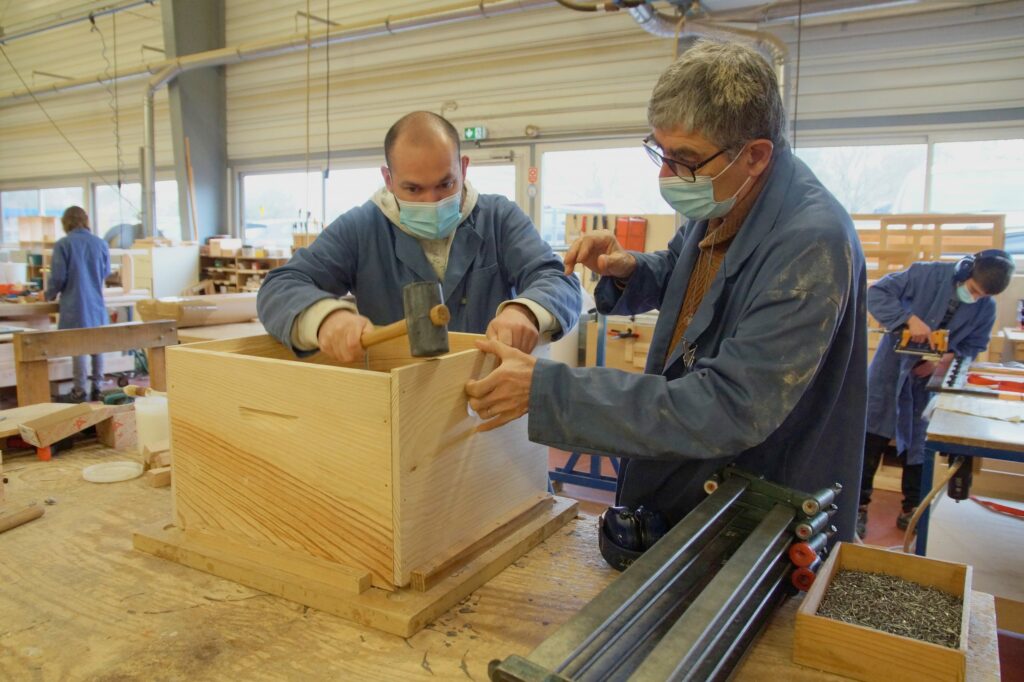 L’activité bois et apicole permet aux travailleurs de développer de véritables compétences professionnelles : précision du geste, respect des consignes, travail en équipe, compréhension d’un processus de fabrication complet.