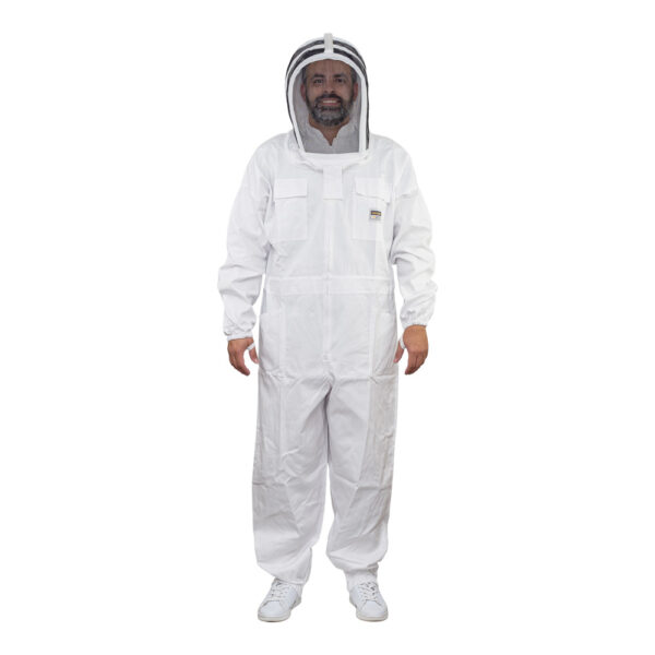 La combinaison apiculteur est conçue pour une protection efficace et un confort optimal au rucher. Fabriquée en toile légère (polyester et coton traité anti retrait), sa coupe ample prévient les piqûres en évitant que le tissu ne colle à la peau. Très appréciée pour sa légèreté durant les fortes chaleurs estivales, son voile intégral, rigide et amovible, assure une visibilité parfaite tout en gardant les abeilles à distance.