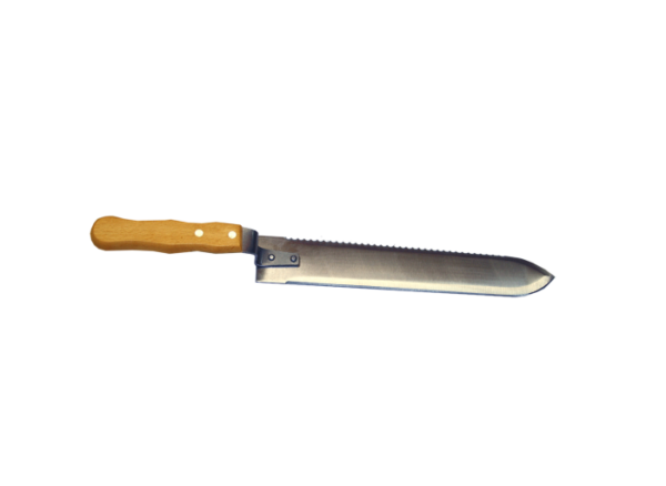 Le manche, fabriqué en bois robuste, a été pensé pour une ergonomie optimale. Il assure une prise en main ferme et confortable, réduisant la fatigue lors des longues sessions de désoperculation. La robustesse de l’ensemble garantit un investissement durable pour votre matériel de miellerie.