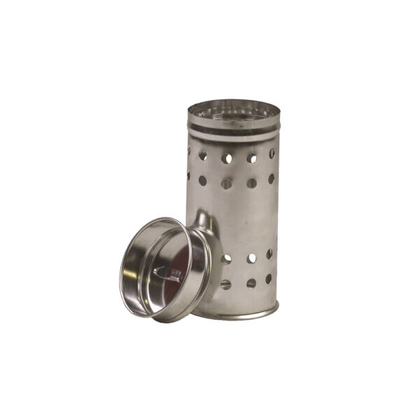 Préservez le bois de vos ruches vides contre la fausse teigne grâce à ce diffuseur métallique spécialement conçu pour les mèches de soufre. Son design entièrement aéré garantit une diffusion optimale de la fumée soufrée. Très pratique, il est équipé d’un crochet intérieur pour suspendre facilement la mèche.