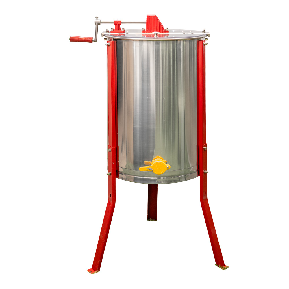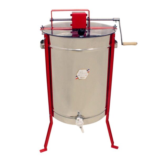 Idéal pour équiper les mielleries de taille moyenne, cet extracteur manuel en inox permet de récupérer le miel des cadres. Il peut contenir jusqu’à 9 ½ cadres de hausses . Muni d’une cage en inox, la méthode d’extraction des cadres est radiaire, donc pas besoin de retourner le cadre afin de réaliser une extraction complète. Tous les extracteurs manuels sont en inox avec engrenage nylon sous carter plastique, avec manivelle et robinet clapet en 40×49 mm se vissant sur le manchon inox soudé de l’extracteur. Les couvercles sont en polycarbonates sur charnières inox. L’axe tourne en fond de cuve sur une bille logée dans une crapaudine inox vissée.