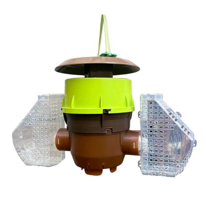 Le piège repose sur l’attraction des frelons grâce à un appât sucré ou fermenté (mélange de bière, sirop et vin blanc, par exemple). Les frelons entrent par des ouvertures calibrées, mais ne parviennent pas à ressortir, ce qui permet de limiter rapidement la pression sur les ruches et les pollinisateurs.